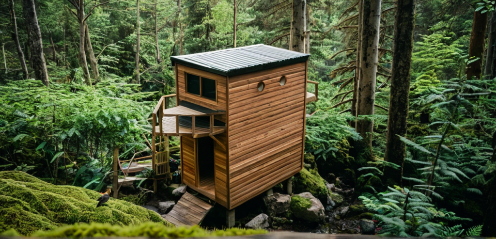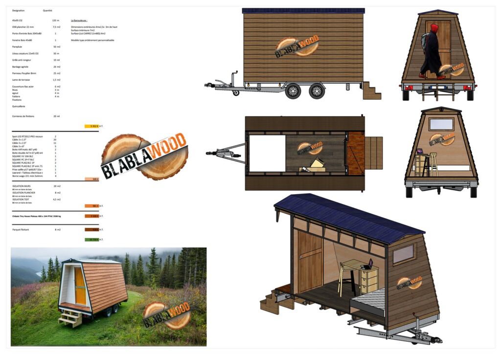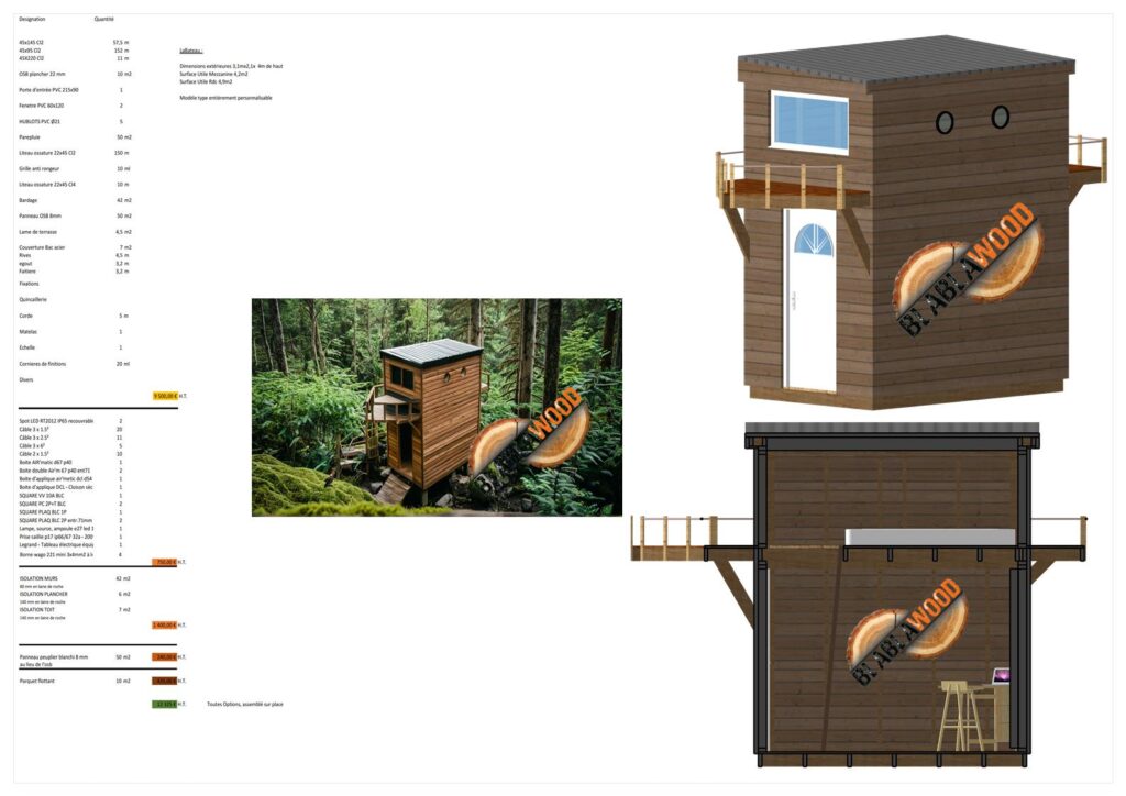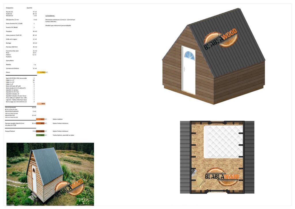 Modèle type entièrement personnalisable, dimensions extérieures 3,1×2,1x4m de haut, Surface utile de 4,2+4,9m2, à partir de 9500 € H.T.
